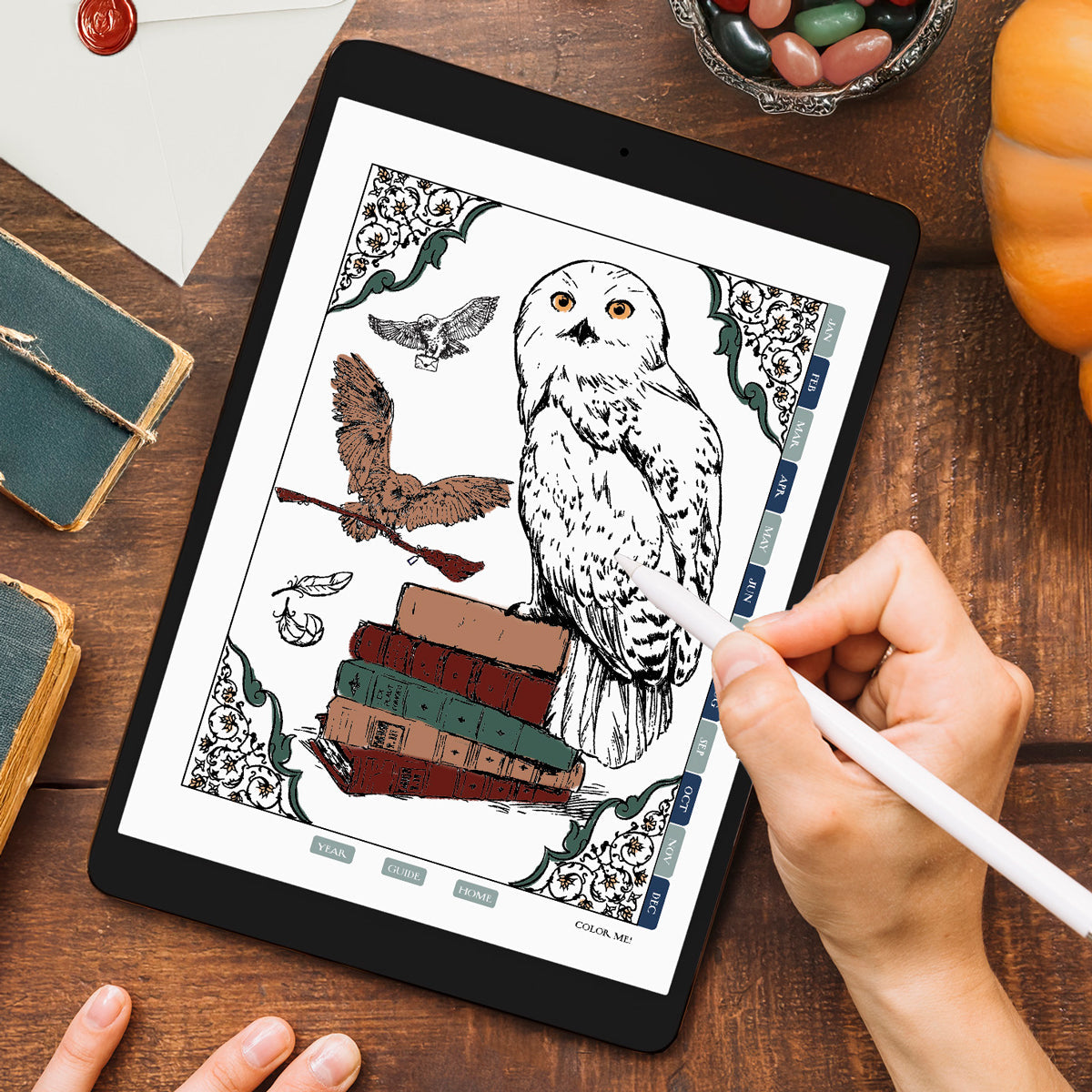 Enjoy full monthly spreads and vertical weekly pages, habit tracking tools, 12 colorable monthly divider pages, plus holidays, character birthdays, and notable dates. Built-in hyperlinks allow you to jump to different sections with just a tap, while the bonus sticker pack lets you decorate every page in true Hogwarts style.
