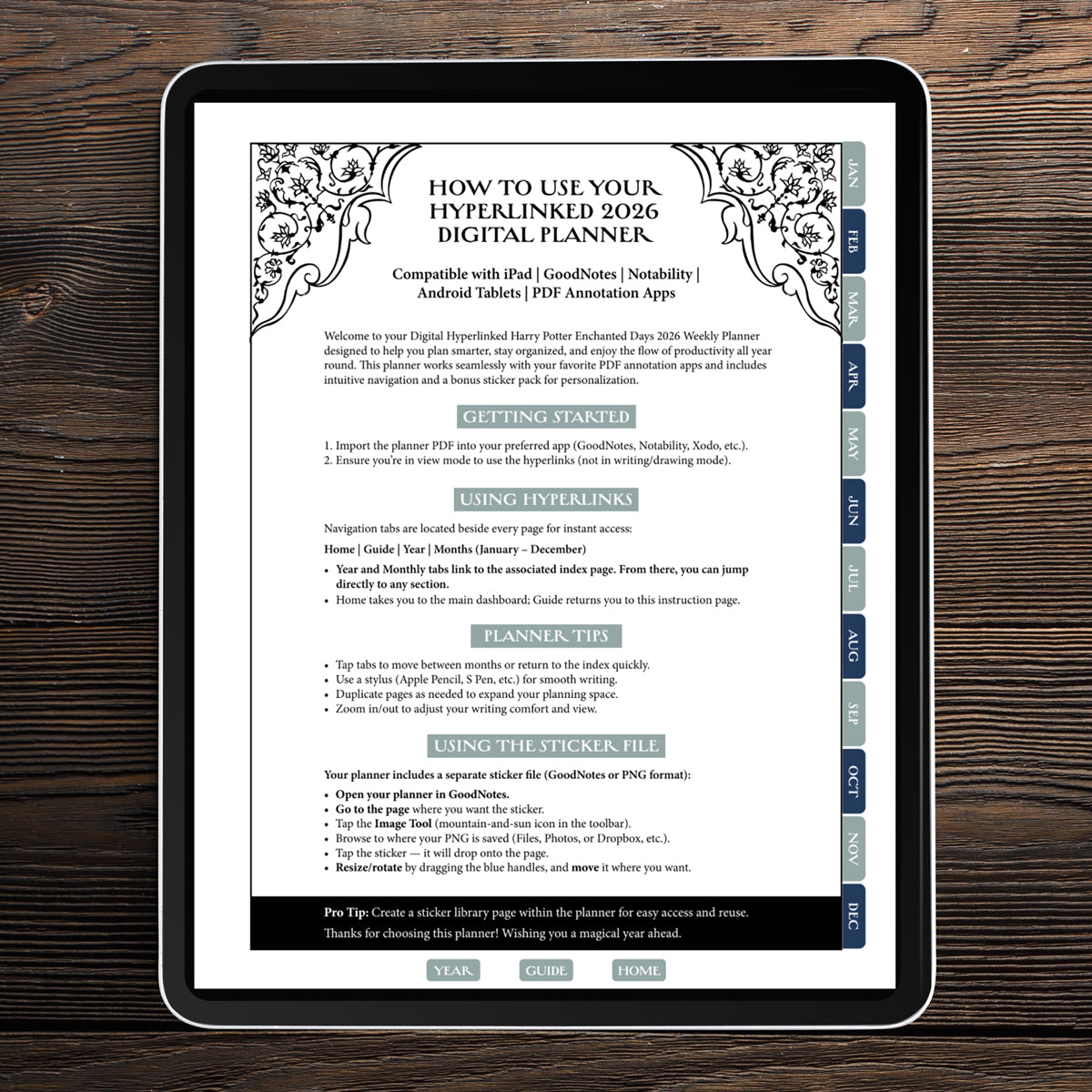 Get ready to turn your tablet into a magical gateway to Hogwarts! We're super excited to announce that our fan-favorite Harry Potter 2026 Weekly Planner is now available as a downloadable digital planner! Compatible with GoodNotes, Notability, and most PDF annotation apps on your tablet, laptop, or even your phone!