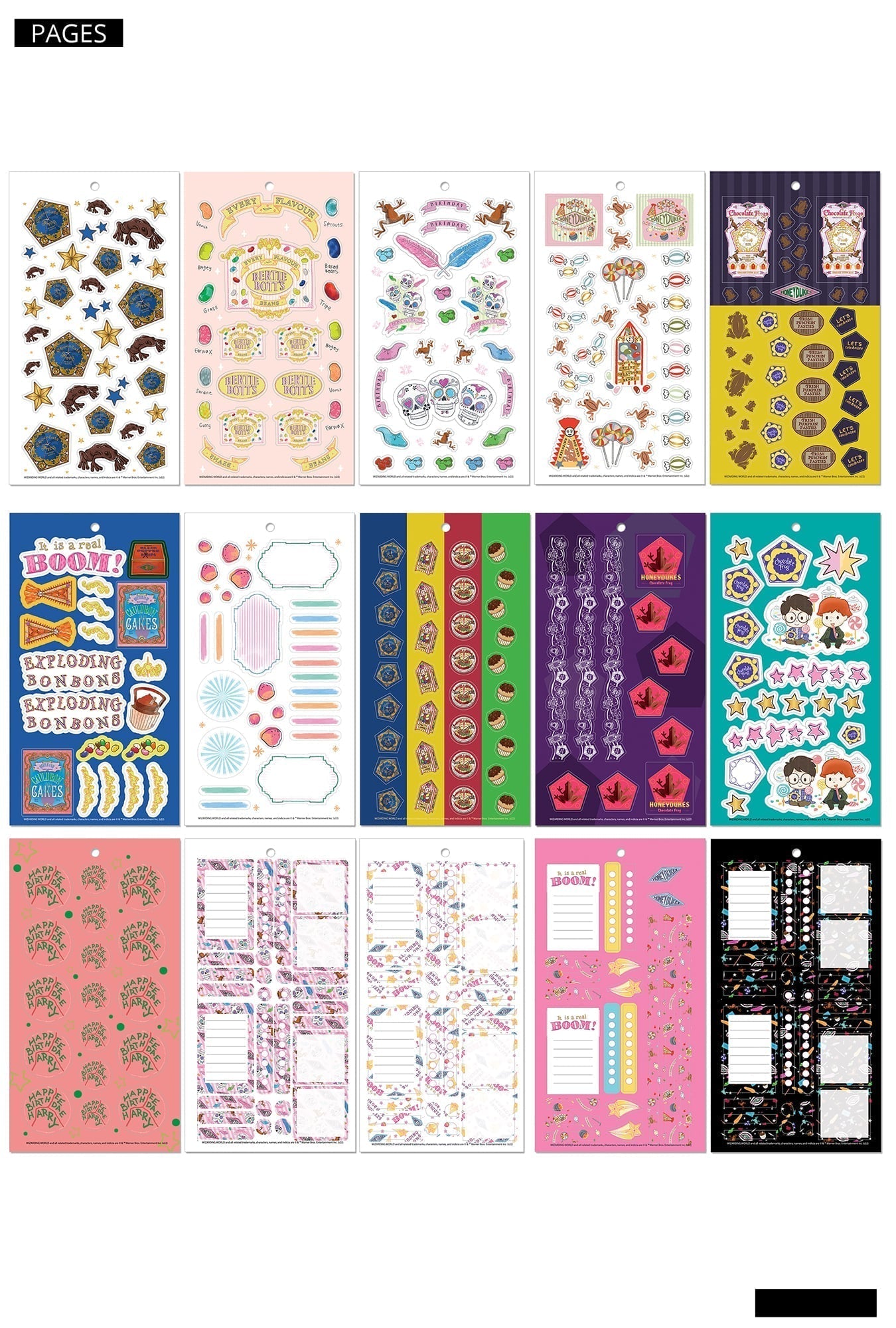 It's a real Boom! Our new Harry Potter Honeydukes and Weasley's Wizard Wheezes Planner Sticker Book is packed full of decorative and functional stickers featuring your favorite magical candies, Harry's birthdae cake, and Weasley twin joke shop products. With golden accents, clear stickers, plenty of checklists, and washi strips, there are 30 pages of stickers to plan your magical and muggle tasks! Perfect for decorative planning, journaling, and more. Stickers range in size and are compatible with our spiral planners, undated spiral planners, and disc planners!