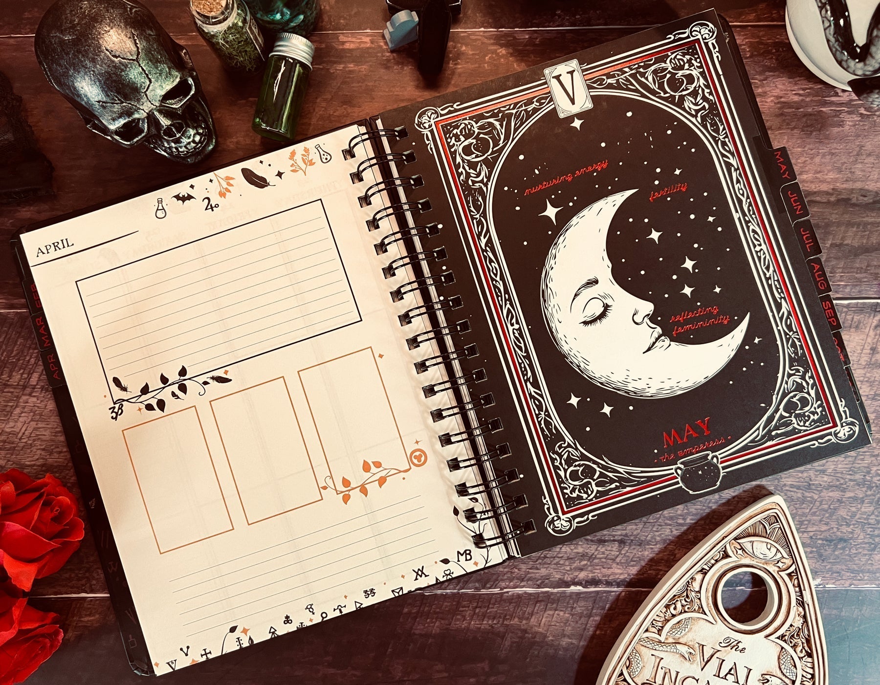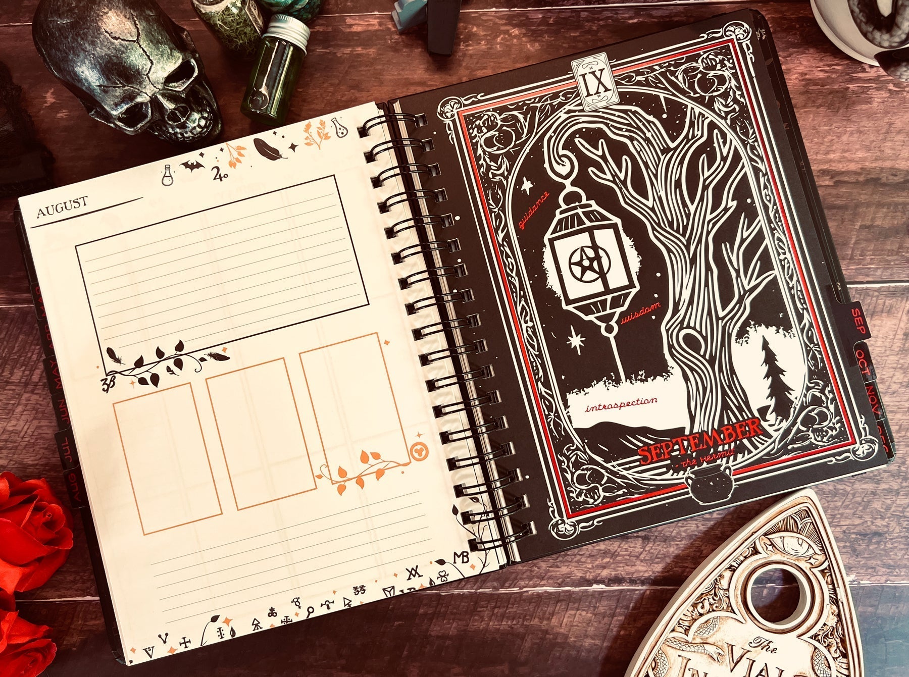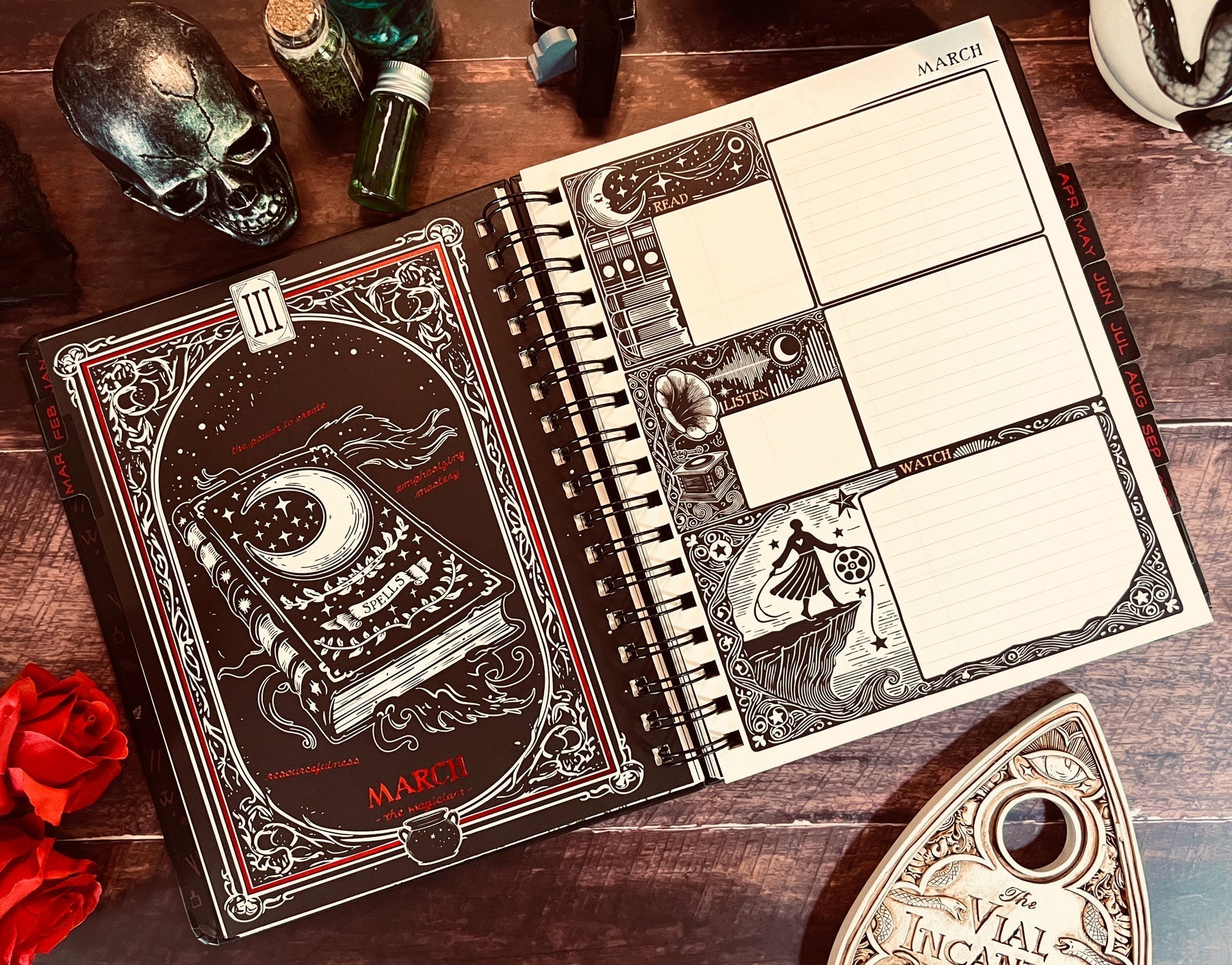 - Features 12 unique, monthly tabbed pages with tarot card-inspired designs