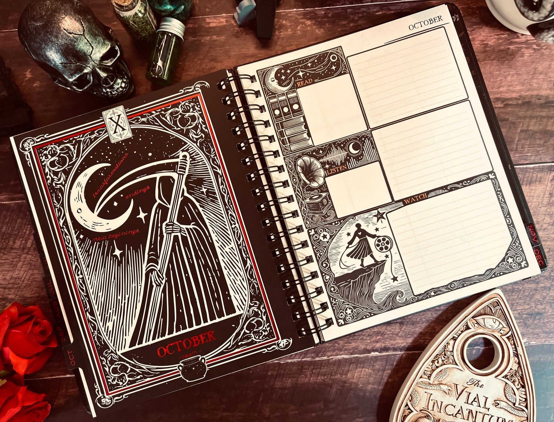 Your black heart will relish the new year with our Waiting for the Night 2026 Dated Weekly Planner by Con*Quest Journals. Covering January through December 2026, this planner is designed with dark beauty and gothic elegance to help you stay organized all year long.
