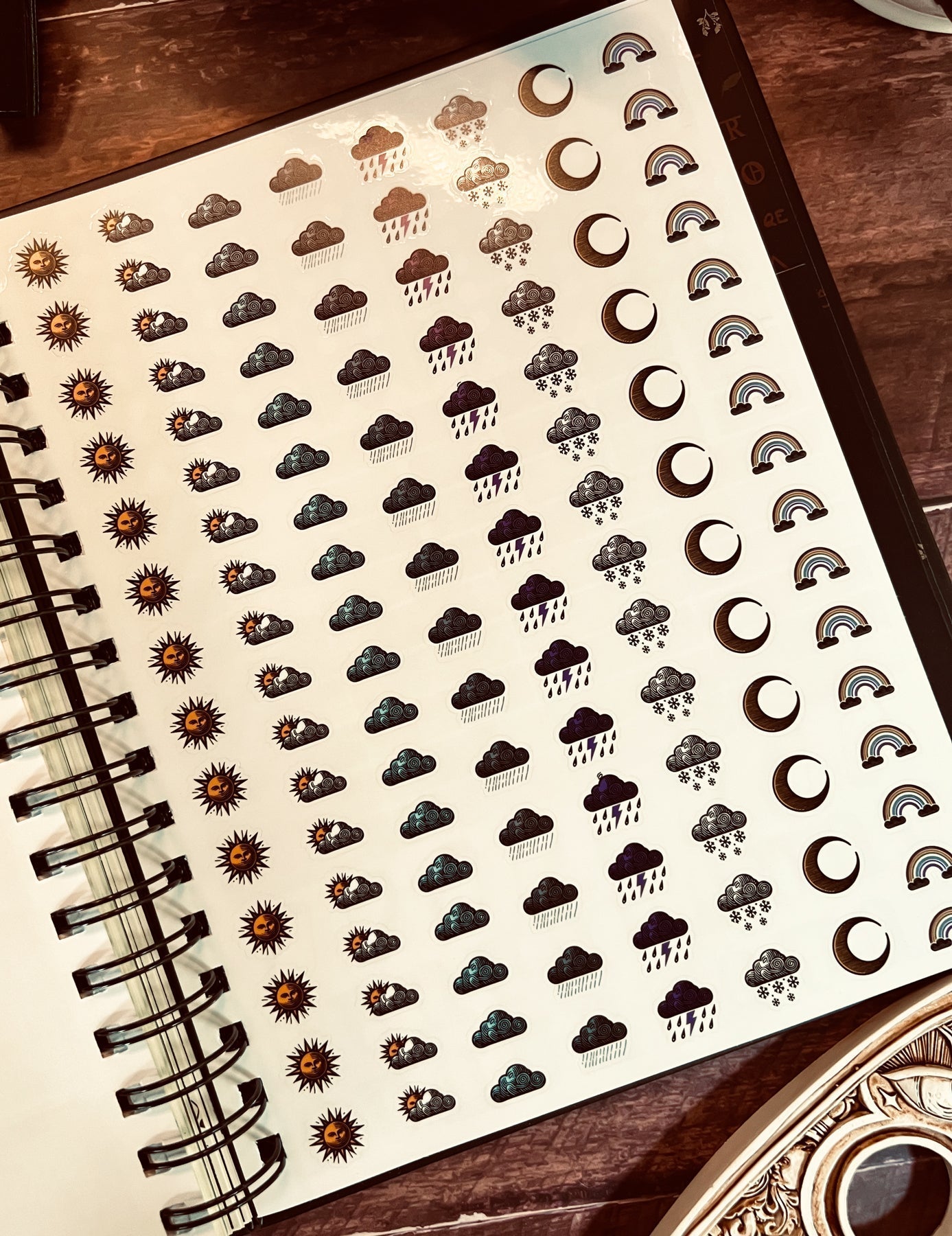 - Includes 4 planner sticker sheets including clear stickers with foil details, writable stickers & weather symbol stickers